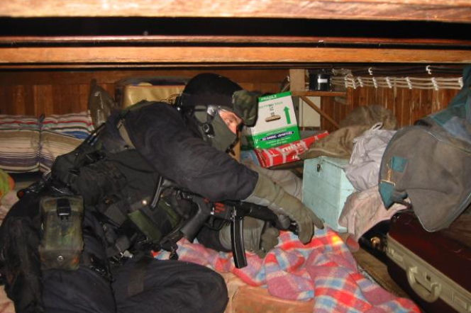 Oczywiście każdy zespół abordażowy miał przyrządy do pokonywania takich przeszkód. Sprawnie więc wycięli otwór, który dostali się do wnętrza.